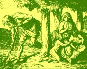 Dar n-au ascultat porunca cei ce-au fost întâi zidiţi Şi din Rai, Adam şi Eva, fost-au iute izgoniţi. Supărat le-a zis Stăpânul: Tu Adame fii rob muncii, Iar tu Eva fii plecată şi-in durere să-ţi naşti pruncii !